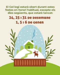 - Vesprades: dilluns, dimecres i dijous de 16:30 a 19:00h