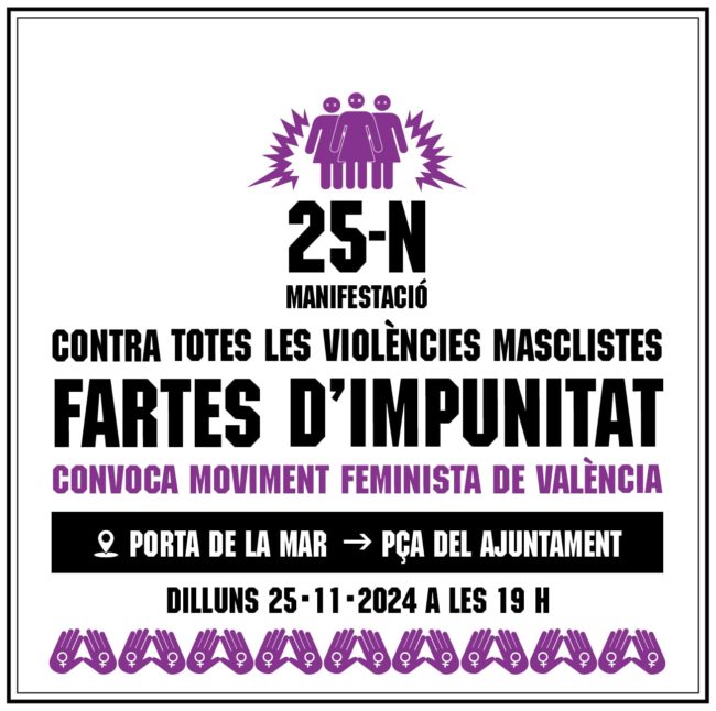 MANIFEST 25 de novembre de 2024 QUE LA VERGONYA CANVIE DE COSTAT! Escrivim aquest manifest, devastades per la tragèdia en la que estem submergides a hores d’ara, la DANA…