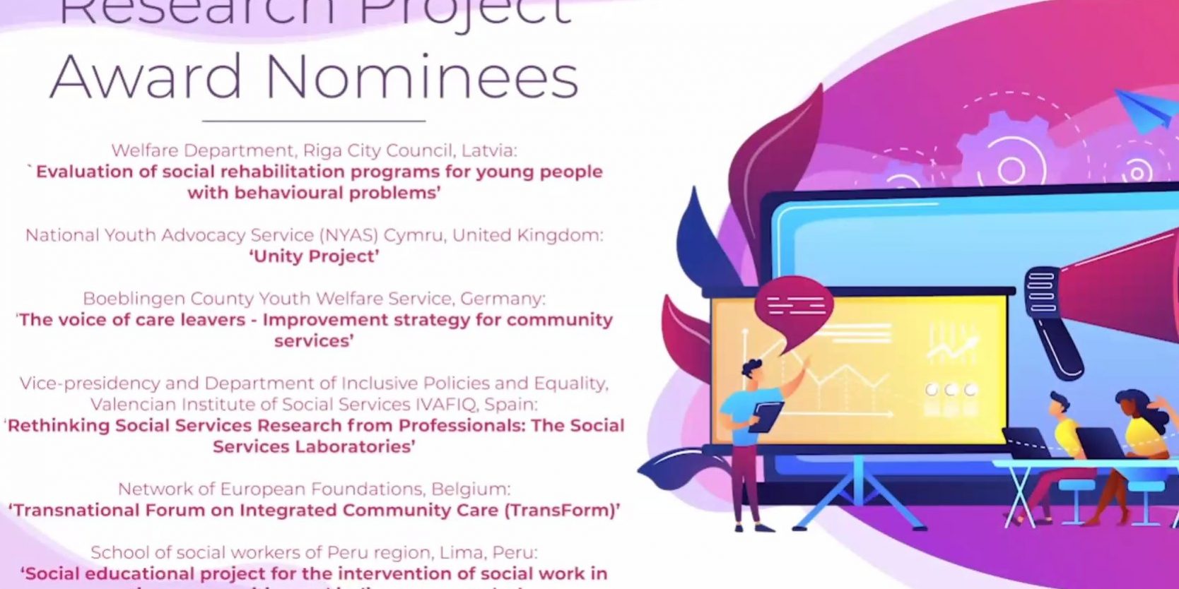 Chiara Crepaldi from the Italian Institute for Social Research announces the project «Rethinking Social Services Research from Professionals: The Social Services Laboratories» (Valencian Institute for Social Services) as the winner of Research Project Award #ESSA2020 pic.twitter.com/9xvX4C7F1S