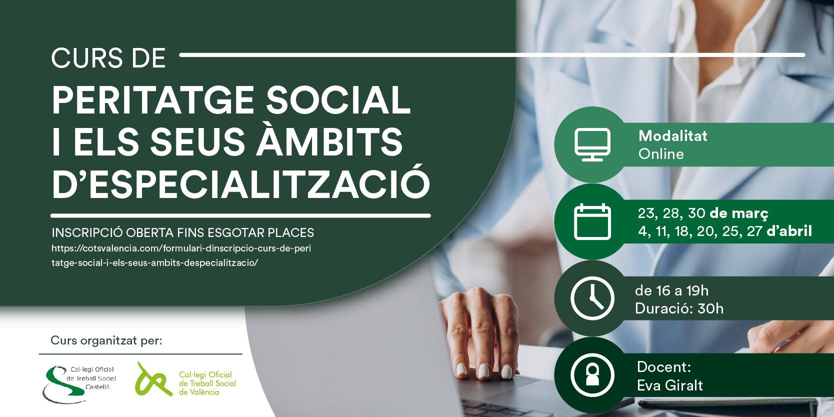 S’impartirà en deu sessions sincròniques en modalitat en línia els dies 28 i 30 de març, i 11,18, 20, 25 i 27 d’abril de 2023, en horari de 16.00 a 19.00 hores